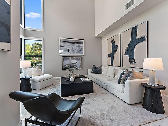 Completely reimagined and renovated from floor to ceiling in 2024 by luxury custom home builder, Le Chateau Custom Homes. This exquisite Frenchman's Creek townhouse gem features 3,079 sf with 3 bedrooms plus den/extra room, 4 full and 1 half bath and a spacious backyard with large pool, outdoor shower, new landscaping and water views. Sitting on one of the prettiest water lots in a prime location just steps from the club with easy access in & out of the community, what more could you ask for? Every surface of the home has been updated, including complete impact glass windows,12 foot sliders and doors, new roof, new Downsview kitchen and bathrooms, new salt water pool system & surface, all new stone decking and much more. As you step inside, you are welcomed by soaring ceilings and lots of light throughout the living areas. The main level features an open concept, Fiandre porcelain flooring in the main areas, brand new glass hand rail staircase with European oak floors and new powder room. The brand new Downsview Kitchen boasts Cristallo marble countertops and backsplash, SubZero refrigerator/freezer, Wolf induction range and ovens, and Wolf coffee station, Cove dishwasher. Also on the main level, the spacious primary bedroom has European oak flooring and hosts his and her bathrooms with custom Downsview cabinetry and state-of-the-art appointments. Upstairs features two large ensuite guest bedrooms as well as a separate den or office. Some additional features are 2 car garage with epoxy flooring, new LG washer and dryer, new plumbing, new HVAC, new electrical/lighting, new water heater, alarm system, central vac and so much more. Call for your private tour today.