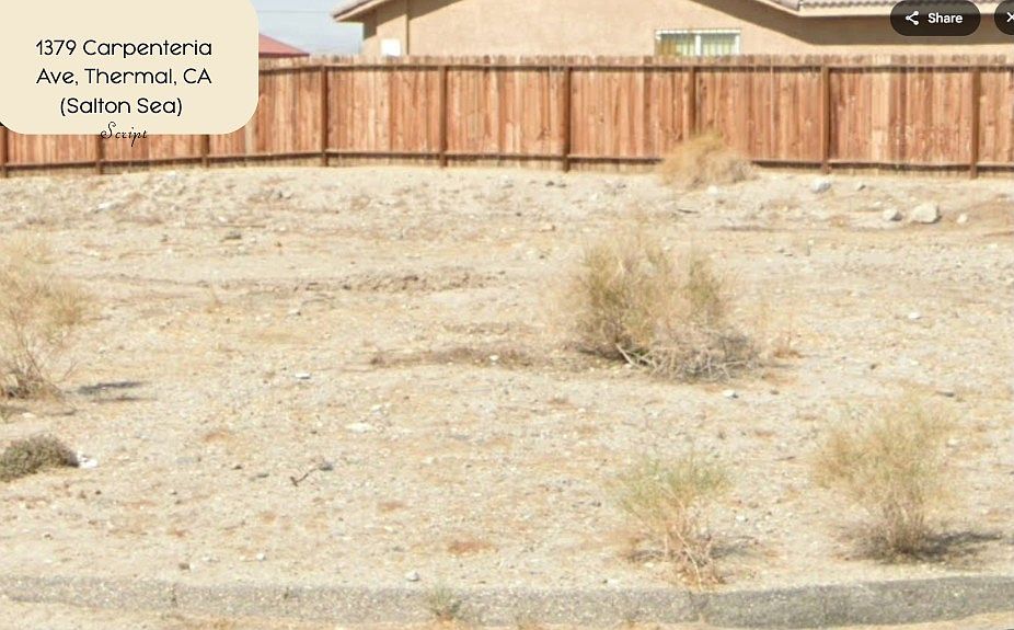 Take advantage of this finished ¼-acre corner lot located reasonably back from the Salton Sea, nestled inside the community. Situated on paved Carpenteria Avenue, this fenced parcel is ready for your vision—with electric and water utilities nearby and homes already built on the street. Sewer is available for hookup, per Salton Sea Community District for only $3700. Whether you're looking to build a weekend retreat, investment property, or long-term residence, this lot is ideally located for easy access. Manufactured homes are permissible.