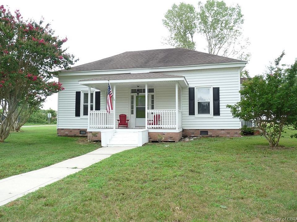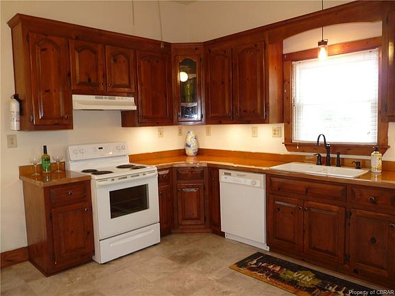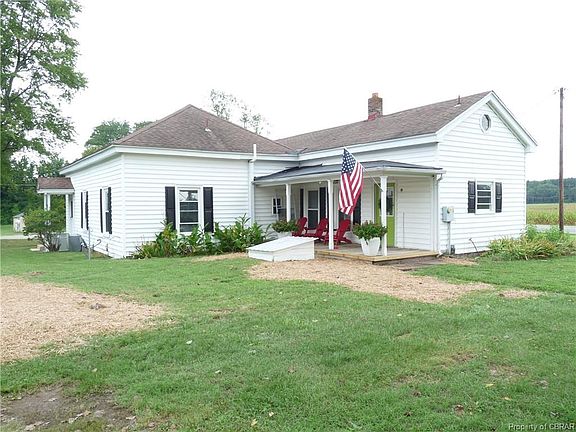 Affordable remodeled home in a great location within walking distance to Shacklefords Post office and a church. There are 10 foot ceilings and spacious rooms which gives it great character. Freshly painted, new floor coverings throughout, new bathroom vanities (granite in the hall bath) and toilets, new oil rubbed bronze light fixtures and faucets, new counter top and porcelain sink in the kitchen, new curtains throughout, two new electric fireplaces giving the ambiance of a real fire or for supplemental heat, newly built rear covered deck and railings on the front porch. Upgrades include a deep well in 1997 and windows replaced in 2009. There are 2 bedrooms plus another room that can be used as a bedroom as it has a closet or an office with built in bookshelves. Large eat-in kitchen has room for casual dining plus there is a separate dining room and a large family room. Great home for entertaining or for family picnics in the spacious yard under the shade trees. Room to build a garage. The home is sold as is except for the well, septic and termite inspections. Home has had yearly termite inspections. Septic system was just inspected and pumped. Washer/dryer as is.