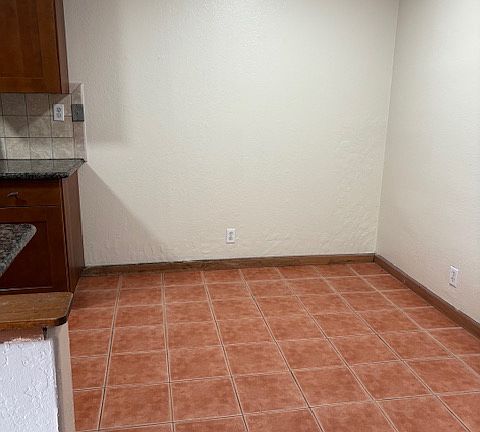 Downstairs condo with backyard and detached 1-car garage + 1 open space parking. Unit has been freshly painted throughout. New window coverings & window screens. Bedroom with ceiling fan. Laminate flooring in living room, hallway and both bedrooms. Kitchen with separate eating area. Coin operated washer/dryer on site.