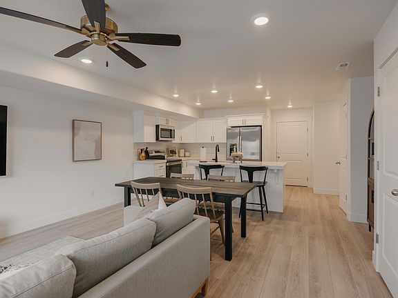 MODEL HOME AVAILABLE WITHOUT FURNITURE! AMAZING $10,000 INCENTIVE TOWARDS CLOSING COSTS, RATE BUYDOWN, OR PRICE REDUCTION REGARDLESS OF LENDER! Move-in ready! These beautiful townhomes built by Flagship Homes feature 3 bedrooms, 2.5 bathrooms, quartz countertops, laminate flooring throughout the main level, beautiful cabinets, and 2 car garage. The primary bedroom has a walk-in closet and dual sinks with a separate tub/shower. Great location close to shopping, restaurants, and I-15. Call the agent for more information or stop by our model home at 1379 North 1810 East, Spanish Fork, UT for a tour. Model home hours: Monday-Saturday 11 AM - 6 PM. Buyers to verify all information. Square footage is from house plans.