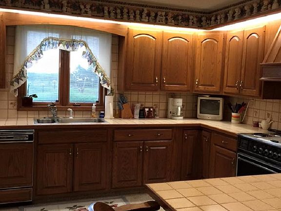 Larger kitchen with Wood Mode cabinets, dining room, living room, family room with see through wood fireplace, two car attached garage, berm home. 3260 square feet. Also, three car detached garage and a 30 X 50 foot metal building with concrete floor. Pond is stock with catfish, bluegill and bass. Small orchard. One mile off four lane, 12 minutes to Quincy, IL. Roof replaced 8 years ago. New heat pump installed in Dec. 2013.