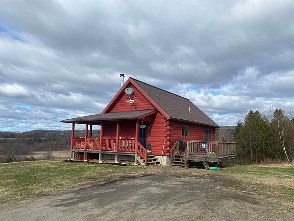 Have you ever wanted to live in the country, on a hill with views, observing nature, watching the sun rise and set, just far enough out of town to provide great privacy but yet only minutes to everything that's important? This is that dream come true! This 2008 log cabin has that rustic feel but is anything but. Radiant floor heated, with a cook top wood stove and an additional direct vent propane wall heater has all the seasons covered for heat, a whole house generator, covered porches, open deck, granite counters, updated bathrooms, loft bedroom and a finished walkout basement is the short list of what's amazing here. The white pine logs have been freshly stained, the inside freshly painted, the septic pumped and soon the lawn will be green and manicured. Don't miss out on Vermonts spring season.