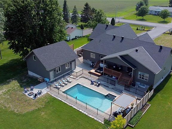 WOW Breathtaking! Words can't describe how exquisite this home truly is! All the details have been thought of, from a beautiful facade, gleaming hardwood & ceramic flooring, high-end light fixtures & appliances - nothing was overlooked! The open concept main floor features a beautiful vaulted ceiling with wood beams, gas fireplace with stone surround & designer chefs kitchen with stacked upper cabinets & huge center island! 3 bedrooms, office, mudroom & laundry all on the main level! Master with luxurious 5pc ensuite & huge walkin closet! The lower level is massive, with a family room, 2 bedrooms/gym & rec room with a stone bar. 33x24' attached garage w/ 600 sq/ft loft currently being used as a spa & 28x28' detached garage. The backyard oasis is sure to impress with heated inground pool, Jaccuzi hot tub, huge interlock patio, deck, firepit & no rear neighbors! Don't miss this dream home.