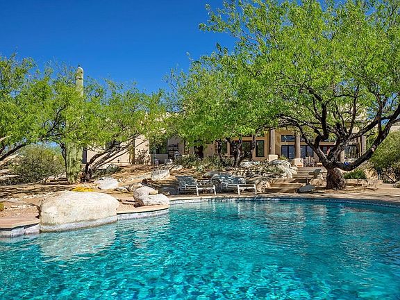 For more information on this property, contact the Listing Agent, Michael Block at (520) 918-4809 or MichaelBlock615@GMail.com. Spectacular setting. Solid wood Mark Butler doors throughout, vega beamed ceiling in LR, large beehive FP, so many built-ins everywhere. Corian in updated kitchen w/double ovens, cabinets with pull out shelves. Reach out and touch the Rincons as you enter the backyard with pool and spa and meditation area. Two separate heating/cooling studios (488 sqft) off over-sized 825 sq ft garage. Gorgeous, Private and such a peaceful and serene special setting.