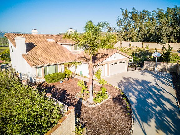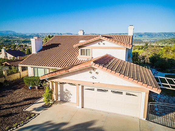Live above it all in Moorpark! This rare view property is in full bloom for Spring with spectacular color and the sweet fragrance of flowers. Flaunting over 2800 sf in 2 stories, this well-built home has 4 bedrooms, 3 baths, formal living and dining rooms, eat-in kitchen, spacious family room and hillside views from nearly every angle. The lot square footage is nearly twice that of most homes in the area, giving the new owner room for a guest house, RV storage or a pool. If you're a gardener, this property is heaven on earth with an array of drought tolerant flora as well as pomegranate and citrus trees. If privacy and serenity are important to you, this may be your perfect fit. This home is gated and enjoys a great sense of arrival via a private driveway. This trophy home also has