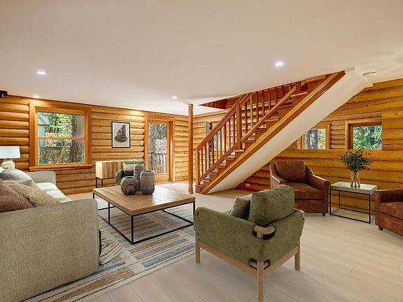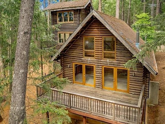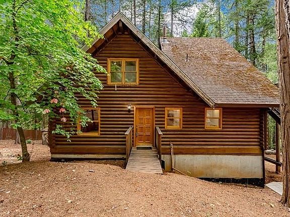 Two fabulous log homes and a detached 4 car garage on a pretty 1.6 acre natural parcel in Nevada City! The main home has a dramatic open floor plan with vaulted open beam ceilings, wood floors and beautiful madrone windows and doors. Handicapped friendly accommodates the whole family! Lots of natural light dances throughout this home and there is a huge partially finished basement on the lower level that can be expanded. The detached guest cabin is adorable with a full bedroom and bath, and a second office with 1/2 bath. The main home is 1453 s.f., but feels huge and the guest house is 640 s.f. The shop is huge and can accommodate 4 large vehicles and has a wood stove. The driveway is circular with two entry gates and year round Rock Creek is at the bottom of the property! All Natural landscaping, with the exception of the garden area that benefits from a big producing well! Extra 2500 gallon holding tank located next to two extra outbuildings for your toys and yard equipment! High speed Fiberoptic internet makes a joy to live and work at home! Enjoy the endless possibilities this property has to offer with flexibility for income, family members or a lovely home office!