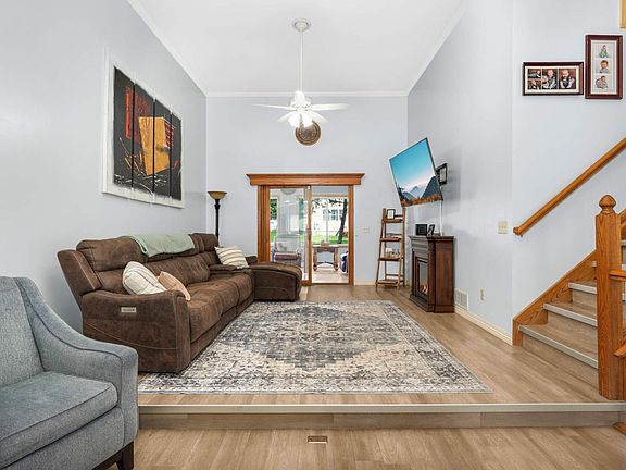 Beautiful 4-level home with spacious rooms throughout. This 5 bedroom, 3 bathroom property features an oversized 22x19 eat-in kitchen with stainless steel appliances, vaulted ceilings, center island and abundant cabinet space. The main level offers a formal dining room, great room with 13-foot ceilings and a sunroom filled with natural light. The 4th level offers a 5th bedroom plus a large unfinished area for future living space. Additional highlights include a heated/insulated 3-car garage, inground sprinklers, newer concrete driveway, new furnace and A/C and storage shed. Situated on a large corner lot at the end of a quiet street. This home is a definite must see!