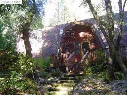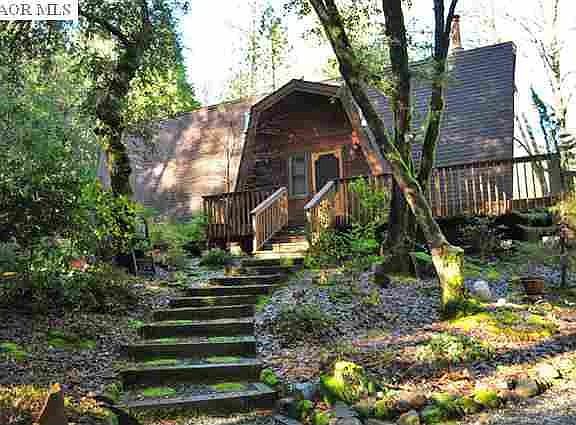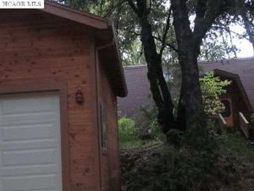 Beautiful Creek Scene! Great knotty pine home built by Chuck Slavonic sitting on 800\' of year round Wolf Creek. Dramatic cathedral ceilings and extra windows bring the outside in. Extra storage shed beside detached garage & greenhouse. Land is cleared & Park-like, contiguous to BLM land. Original Daisy Blue Mine on property. Fish, pan for gold or just relax at this incredible property! 3 miles to downtown Grass Valley and easy access to Highway 49.