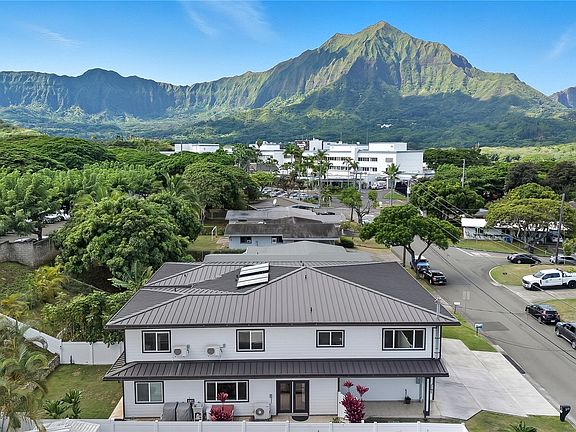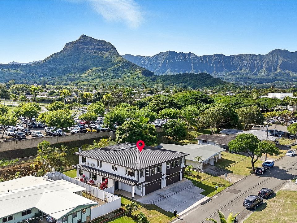 Discover modern island living in this spacious multi-generational home, thoughtfully designed and completed in 2021. Located in the highly regarded Kukanono neighborhood, this two-story residence offers both comfort and functionality with double-wall construction, quality finishes, and refreshing trade winds that flow throughout. The ground level is perfect for extended living or guests, featuring two bedrooms, walk-in closet, a full bath, wet bar, and luxury vinyl flooring under soaring 8-foot ceilings. Upstairs, the main living area boasts three bedrooms, two walk-in closets, white quartz countertops, washer/dryer, and 9-foot ceilings that create an open, airy feel. Energy efficienct with a 5-zone split AC system, solar water heater, and EV charger. A private backyard and two-car garage add to the home’s appeal. Ideally located near Adventist Health Castle with easy access to Pali Highway, Downtown Honolulu, and Kaneohe, this home also puts you minutes from Kailua’s world-class beaches, dining, and boutique shops. This is more than a home—it’s a place to create lasting memories in one of O'ahu's most sought-after communities. *VA Assumable at 4.25% for qualified VA buyers!*
