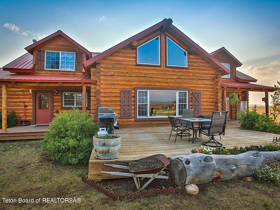Rare find ! 90 acres with some irrigation/water rights and breathtaking mountain views. This is the log home you envision when you think about finding your Wyoming home. Located in the Daniel/ Cora area of Sublette County. This 2-story gem has large living room with custom design work on the ceiling and nice rock wood burning stove. Nice kitchen, mud room, laundry and half back right off of the attached 2 car garage. Master bedroom and bathroom on the main level. Upstairs is 2 more bedrooms, loft or office area and on suite-bathroom. Plenty of room outside for your animals with nice barn with stalls and water, also a green house and storage building. Round corral and some pasture fencing. Approx. 22 acres is in grass hay or great pasture. Seller called back to work, Your good fortune.