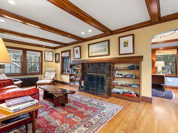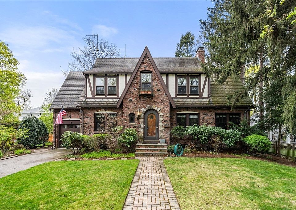 Ideally located tudor, in close proximity to Fesseden & walking paths through coveted Newtonville neighborhood. This home has undergone meticulous renovations, restoring many period details while updating for modern living. Enter through a gracious foyer leading into a front to back living room w/wood beams, built-ins & fireplace. A cozy den/office w/ glass door leads to a 3 season porch, level yard w/mature plantings & water feature. The dining room includes beautifully restored gumwood moldings & flows into the renovated kitchen featuring Garland range, ample storage w/exterior access to expansive deck. 2nd floor boasts generously sized en-suite primary bedroom w/walk-in closet. 2 additional, ample sized bedrooms & nursery are serviced by a spacious & sunny full bath. Finished playroom w/wet bar, mech/laundry room & organized storage. New electric & solar. Walk up attic. Fenced yard, shed. Enjoy shopping, restaurants & public transport of nearby Newtonville, Nonantum & W. Newton.