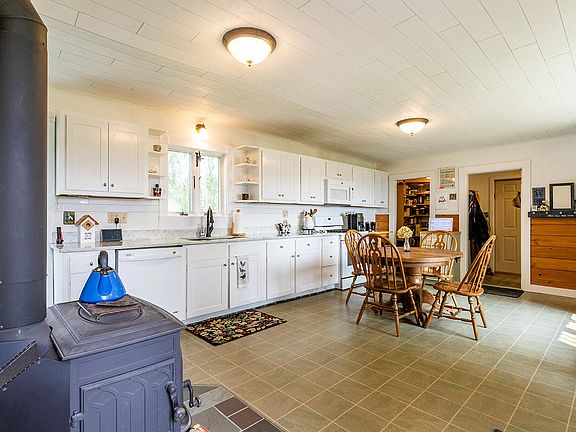This beautiful antique farmhouse has received many energy efficient upgrades throughout the years by the caring owners. Rigid foam insulation on the exterior of the house, spray foamed basement sills, and moisture mitigation work done in the basement. A whole house generator, modern insulated windows, paved driveway and newer roof round out this wonderful property. The first floor offers a large kitchen with seating and a cozy woodstove. This opens into a dining room with the original period details. A front sitting/living room leads to the upstairs, where you'll find three bedrooms, an office and a full bath.