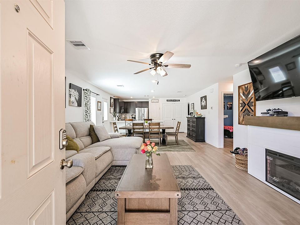 Welcome to this stunning 3-bedroom, 2-bathroom home in the highly sought-after Green Trails community! Built in 2022, this beautifully designed Lennar Cottage Collection "Windhaven" Plan with Elevation "C" offers a perfect blend of modern comfort and style. Step inside to discover a spacious open-concept floor plan, ideal for both entertaining and everyday living. The bright and airy living area seamlessly connects the kitchen, dining, and family room, creating a welcoming space for family gatherings or cozy nights in. The kitchen is a chef's dream, featuring sleek countertops, updated appliances, and ample cabinet space, perfect for preparing your favorite meals.