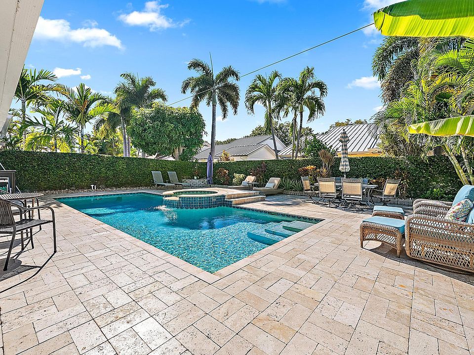 Step outside to enjoy the heated saltwater pool and spa, surrounded by tropical landscaping and travertine decking a private oasis designed for year-round enjoyment.