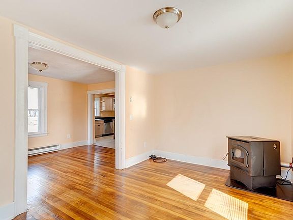 Welcome home to this cozy Colonial set back off the road for a generous slice of privacy! A beautiful Farmers Porch wraps around and welcomes you inside. This modest home features 3 bedrooms and 1.5 baths and Hardwood floors that flow through this vintage home with modern accents. It accommodates a first Floor bedroom and Half Bath! It is just the right size for a young family or a first time home buyer. Property also features updated windows throughout, a Pellet Stove, young roof and great level back yard! Come see it before it's gone!