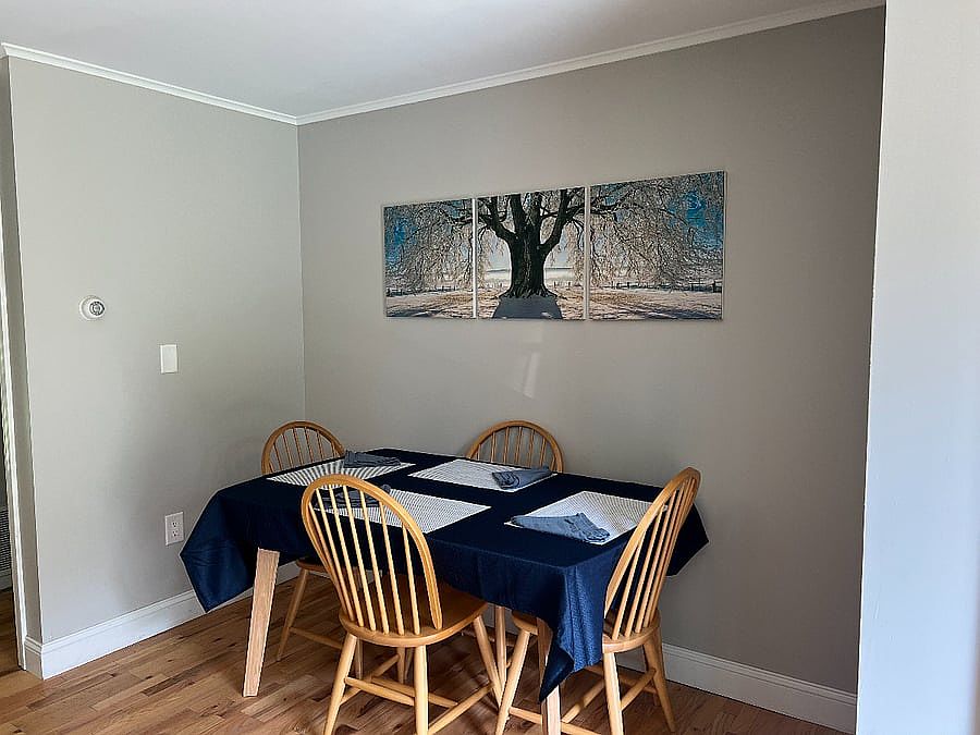 Our charming 2 bedroom 1 bath sleeps 4 with a queen bed and 2 twin beds. All new appliaances and hardwood floors. The washer and dryer are located in the unit. The fully stocked kitchen has everything you need for cooking and dining in.
