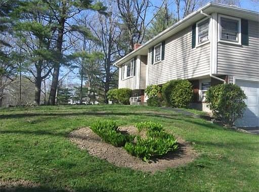 Solid Hip Roof split with 2yr new furnace, recent roof,siding and insulation ready for your inspection. Two brick faced fireplaces. Hardwood floors, Formal dining room.Applianced kitchen with plenty of cabinet space and outside deck overlooking private yard. Three bedrooms with excellent storage and hardwoods. Bright full bath with double sinks and linen closet.Walk out basement Washer/Dryer hook ups. Garage under -Title V pass