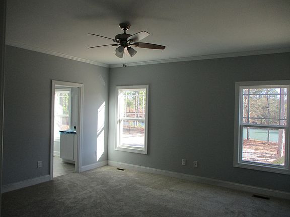 Waterfront New Construction Home in Carolina Hills Subdivision. It has Split Bedroom Floor plan with 3 Bedrooms and 2 1/2 Baths, Great Room, Beautiful Kitchen with White Cabinets and Granite countertops and an Island. All Kitchen Appliances will be Stainless Steel and the Refrigerator will be included. The kitchen is open with a dining area included. Master Bedroom is on the back of the house with a big walk-in closet and Tile Shower in Bathroom. A set of interior steps lead up to an Unfinished Bonus Room above the garage and when finished it would add another 250 to 300 square feet to the house. The screened-in porch on the back of the house has a great view of the water. Large backyard that has lots of room for outdoor entertaining. Seller is a NC Licensed Real Estate Agent