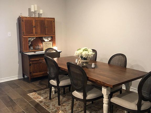 Large officeLight carpeted bedroomsTwo car garageSpacious kitchenThree additional bedroomsFaux wood plank tileSmall back porch
