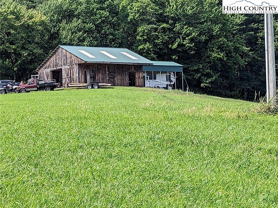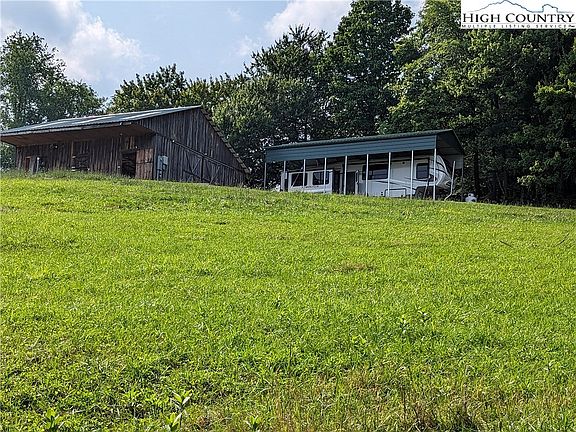 Is this the one you've been waiting for? VIEWS and RV in place!! The beautiful rolling hills on this parcel are full of goodies! Long range view overlooking pristine fields and mountains. This property has a huge barn with concrete floor and tack/storage room. The concrete extends out to form a patio which connects to a covered pad for the gorgeous 2022 40' 5th wheel Sprinter! Views visible from RV and barn! There is a sweet pond on the property and a stream. There is an old spring well which with investigation may prove to be a potable water source! There is currently a filtered rainwater collection system in place. Combined with the adjoining parcel this is a great 9.3 +/- acre tract ready for whatever you can dream! RV is spacious and plan is attached in supplements. Beautiful kitchen with S/S appliances, TV, dining area, seating area and several spots to sleep. Toilet in RV is hooked to the septic system. This is an unrestricted property ready to help your mountain dreams come true! Use the RV and/or build your dream home! Only minutes from Sparta.