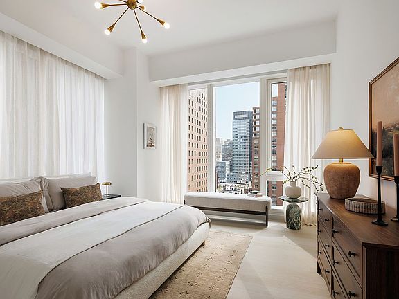 Floor-to-ceiling windowsWaterfall islandBosch washer and dryerLarge walk-in closetEn-suite primary bathNest learning thermostatPrivate residential lobby