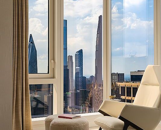 At 71 stories, The Centrale takes its place alongside Midtown Manhattan’s most iconic buildings, encompassing a collection of 124 classic yet undeniably modern residences, envisioned by Champalimaud Design. The Centrale’s exterior design by Pelli Clarke Pelli Architects, builds upon classic Art Deco architecture with contemporary elements thoughtfully displayed throughout, including the lightly reflective glass façade articulated with facets of terracotta chevrons. The Centrale reveals its base, body, and crown from street to the sky with crystalline switchbacks, creating a dynamic rhythm of angled reflections of the surrounding Midtown landscape.