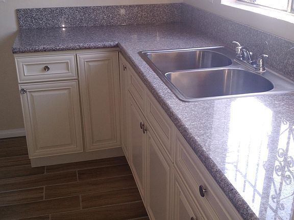 Then you will notice on your right the kitchen which surely delights you with all new antique white spacious cabinets, a stainless steel large sink and granite counter top.