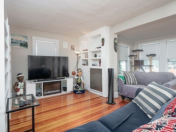 Grab your piece of red hot Milford! Amazing opportunity to own under $400k. This light and bright home combines old-world charm with many modern amenities: an open floor plan living/dining/sunroom, a finished basement, 1.5 baths, and a beautiful deck right off the kitchen. Impress your friends with the open concept first floor featuring gleaming hardwood floors, custom built-in cabinetry, and exposed beams. Nice kitchen features gas cooking and a slider right out to the huge deck, perfect for entertaining. Or hang out in the finished basement with dry bar and custom display cabinets, or in the spacious backyard with firepit and garden shed. Upstairs are 3 good-sized bedrooms and a full bath. Recently updated 1st floor half bath includes main level laundry. Abundant parking: there's a large 2 car garage with workbench and a 4 car driveway. Wonderful location close to all your daily needs and right on the parade route. Bonus!! Zoned commercial, perfect for home-based business.