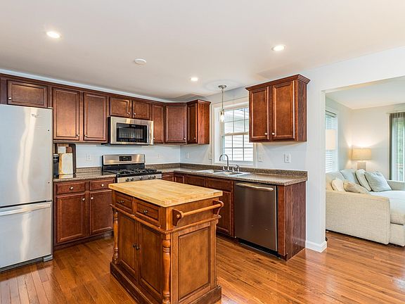 Welcome to Governors Green II, a lovely community in a fantastic location in Epping, NH! Situated in a country setting and close to shopping & restaurants on rte. 125, easy access to rte. 101, and only 10 minutes to downtown Exeter, NH. This tastefully renovated townhome has been updated with excellent attention to design and detail throughout. The open concept layout and beautiful hardwood flooring throughout the main level create a warm & inviting space for entertaining. The kitchen features a gas stove, lots of cabinet space, and a window with a view of the backyard. The dining area has a gorgeous lighting fixture and room for a nice sized dining table. The dining rooms flows directly into the living room where you'll find a glass slider to access to the private back deck, perfect for grilling out or enjoying your morning coffee. A guest bathroom with large vanity for storage completes the first floor. Upstairs you'll find 2 nicely sized bedrooms (one with a custom feature wall), a full bathroom, and separate laundry area. Other nice features of this home include central air, a single car garage, and a full basement with potential for additional living space. Condo fee includes landscaping, snow & trash removal. Household pets allowed. Don't miss the opportunity to make this completely move-in ready townhome your own! Showings begin at the Open House Sun, 7/14, 10a-12p.