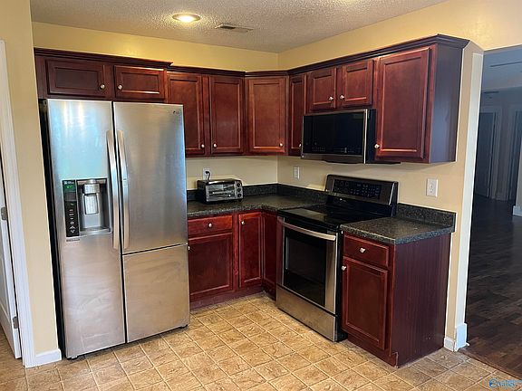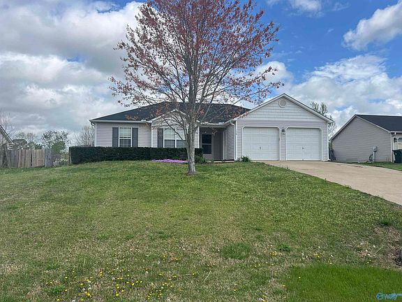 New low price $230,000 Beautiful 3 Bedroom Rancher with 2 Full Baths. New roof in 2024. Laminate Flooring in Family Room, Hall and the Spare Bedrooms. Spacious Kitchen with Breakfast Area and Pantry. Foyer Separates Front Entrance to Family Room. Family Room Has Built-in Corner Fireplace and Soaring Vaulted Ceiling. Master Bedroom Suite Consists of a 17x14 Master Bedroom, a large Walk-in Closet, Private Glamour Bath with Double Vanities, Garden Tub and Separate Shower. A/C Window unit installed in Two Car Garage for added Comfort to use of Workshop area all Season Long. Heat Pump replace in 2024. Vast Privacy Fenced Rear Yard. NEW ROOF 2024. Convenient to shopping and Huntsville.