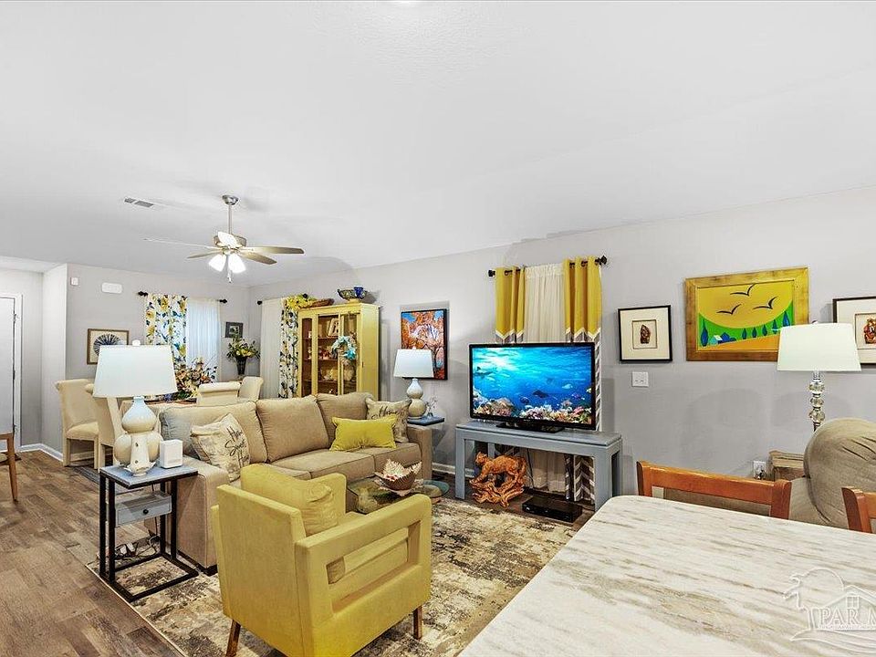 Welcome to 138 Georgia Street, a beautifully maintained 3-bedroom, 2-bathroom home perfectly situated in a prime, short distance location—just a little bit from dining, shopping, and major employers. This residence seamlessly blends modern updates with classic charm, offering both comfort and convenience for everyday living. Step inside to an open-concept layout filled with natural light, where luxury vinyl plank floors flow throughout and soaring 9-foot ceilings create an airy, inviting atmosphere. Every detail has been thoughtfully curated to balance style and functionality, making this home ideal for both relaxing and entertaining. Whether you’re hosting a casual brunch or preparing a dinner for friends, this kitchen offers ample space and modern touches to make every meal an experience. The adjoining dining and living areas provide a seamless transition for gatherings, family time, or cozy evenings by the fire. Retreat to the serene primary bedroom or one of the two additional bedrooms. Two full bathrooms ensure ample space for family, guests, or a home office. Step outside to the covered back porch, a peaceful spot to enjoy your morning coffee, unwind after work, or entertain under the Florida skies. The oversized one-car garage adds extra storage and convenience, while the beautiful yard enhances the curb appeal of this charming property.