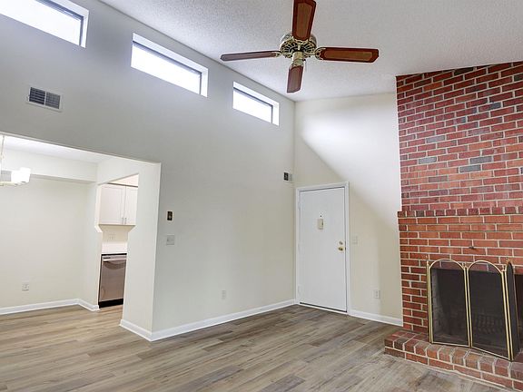 TURTLE CREEK CONDO - This beautiful top-floor condo is just minutes to shops at Stonefield, Trader Joe’s, Whole Foods, and UVa. The spacious floor plan has cathedral ceilings and high windows in the living room that allow the sun to shine in. A just-completed renovation includes new kitchen cabinets, appliances, and Calcatta Gold quartz countertops. New luxury vinyl plank flooring throughout makes for low maintenance. A floor-to-ceiling brick fireplace is wood burning. The balcony overlooks the community and has a large, dry storage area. Turtle Creek has two outdoor pools, two tennis courts, a playground, fitness center and an events space.