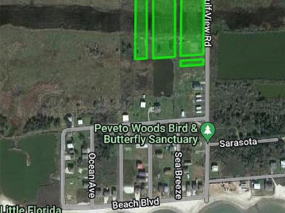 8.81 acres just steps away from Little Florida Beach and Peveto Woods Bird Sanctuary! This Gulf Coast Property has great investment potential for a developer, streets and lots were planned out years ago, Survey is available! This property could also be Homesite for a buyer who would like a large coastal beach home, with lots of privacy and acreage to enjoy with family and friends! Call today for more information!