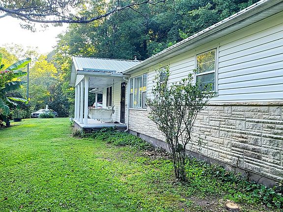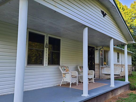 This updated ranch is nestled on 32 STUNNING MOUNTAINOUS ACRES. Recent updates include a new HVAC system. With over 1300 sq ft of living space, the home offers 3 BR's, 1 bath, LR, and den with large 8 ft wide brick fireplace with buck stove insert. Kitchen has new solid oak cabinetry. Off from kitchen is the Laundry Room and a Mud Room. Ceiling fans have been installed in bedrooms, kitchen and den. The house features an attached carport, durable vinyl siding, and a metal roof. The spacious 7 x 24 ft front porch offers the perfect setting for relaxation and entertaining. Large, flat, partially fenced yard is on the side. A 300 ft paved driveway leads up to the home. A 36 x18 ft CABIN is located on the property -an ideal setting for ATV enthusiasts to explore the surrounding terrain.