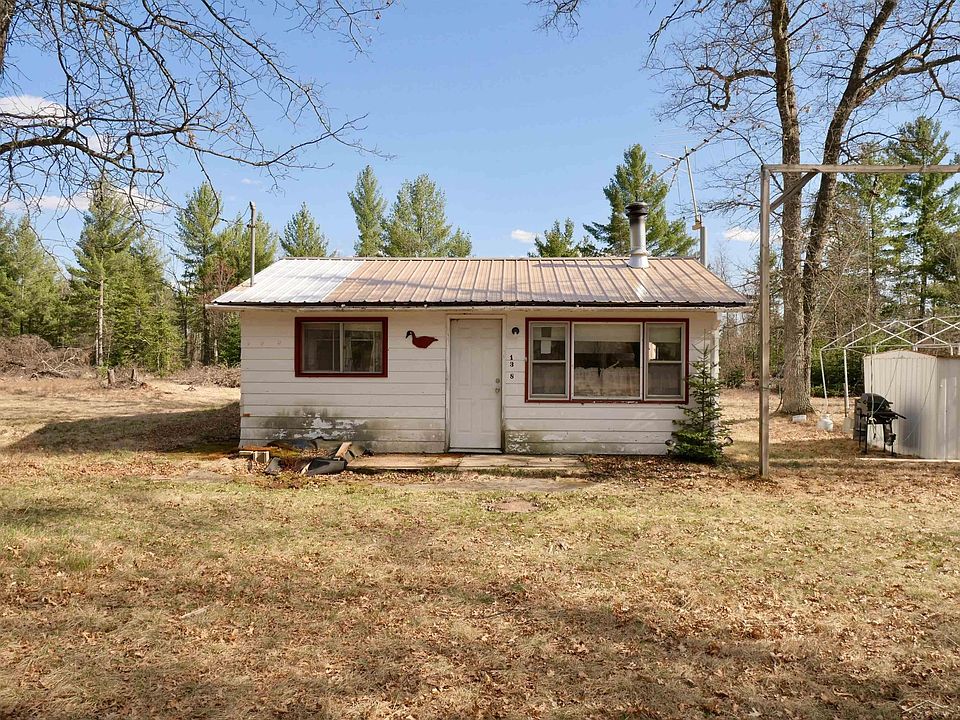 Charming cabin located in West Branch, offering 33 acres of serene surroundings. The gated property has a wealth of amenities, including sheds, a pole barn, 6 elevated deer blinds, alongside swings and a fire pit for outdoor relaxation. Originally featuring 2 bedrooms, the cabin has been transformed into a 1-bedroom to create an expansive open plan living space. The cozy kitchen and living room are enhanced by an airtight Vermont wood burner. The straight well pump ensures excellent water supply and the newer metal roof adds to the property's appeal. This property is a nature enthusiast's dream, it adjoins accessible 80 acres of state landlocked property with Eddy Creek running through it. Nearby, you can explore various lakes, the Rifle Rivers, Lake Ogemaw Marina, and parks for endless outdoor adventures.