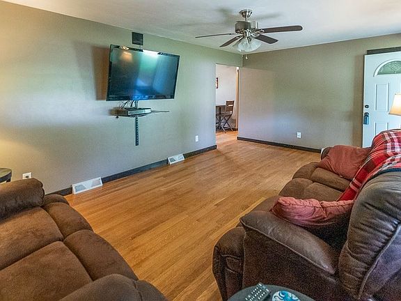 Vinyl-sided, ranch-style home has two steps down to a 15X23 family room with skylights and a .5 BATH. It's beautifully set back on 2.2 private acres with a ravine and creek at the rear. The home has a metal roof, triple pane windows, newer interior & exterior doors, a massive concrete driveway & front porch, a 23x25 heated & insulated 2 car attached garage with 8 & 9 ft doors, a walkout basement with a 21x11 room used as a 3rd BR, central air, hardwood floors, an updated tiled bath, a spacious kitchen/dinette with appliances and a 21X12 Owner's bedroom and LOW taxes. LED lighting illuminates the property inside and out! The landscaping stones and lights add to the beauty! The house is wired for a generator, it's well insulated and the sump pump has a battery backup. You can relax on the wonderful front porch, enjoy the country atmosphere and be in town within minutes! Easy access to I80 and I376!