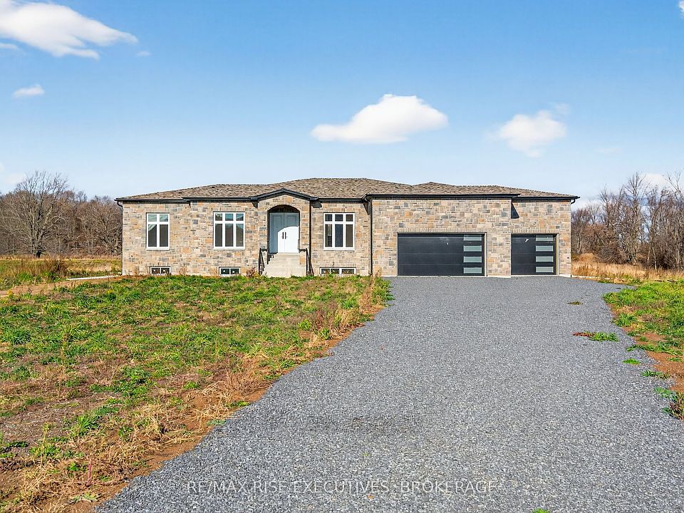 Quality-built custom bungalow by Raven Oak Homes offering over 2,530 sq.ft. of thoughtfully designed living space on a 2.5-acre waterfront lot backing onto Gibraltar Bay. This stunning3-bedroom, 3-bathroom home with an oversized 3-car garage combines craftsmanship, comfort, and convenience just minutes from Kingston. Step inside to a bright, open-concept layout with 9'ceilings and seamless flow between the kitchen, eating area, and cozy living room - perfect for everyday living and entertaining. The formal dining room provides a welcoming space for special occasions, while the front reading room or home office adds versatility to suit your lifestyle. The primary suite features tranquil water views, walkout access to the deck, a spa-inspired4-piece ensuite, and a spacious walk-in closet. Two additional bedrooms are bright, well-sized, and ideal for family or guests. Additional highlights include a large mudroom with direct garage access, main floor laundry, and a convenient 3-piece bath. The unfinished lower level offers plenty of potential for future living space or storage. Outside, enjoy over 170 feet of shoreline-perfect for kayaking, canoeing, or launching a small boat. The level, dry lot offers privacy and space to roam, all within a stress-free 15-minute commute to downtown Kingston, CFB Kingston, RMC, and Highway 401. Built with ICF foundation and walls for superior efficiency and durability. Ask about the available appliance package and book your private showing today!