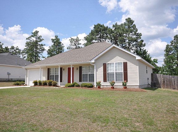 Take a tour of this well cared for charming home located in Hunter's Gate subdivision in North Augusta. Easy access to SRS and I-20. The home features a large, open living area with vaulted ceilings, eat-in-kitchen, separate over-sized laundry room, freshly painted, large closet in owner's suite, 2 wood blinds throughout, covered front porch and a new 40 year architectural shingle roof. The back yard is fully fenced with a faux wrought iron gate and a natural wooded area.