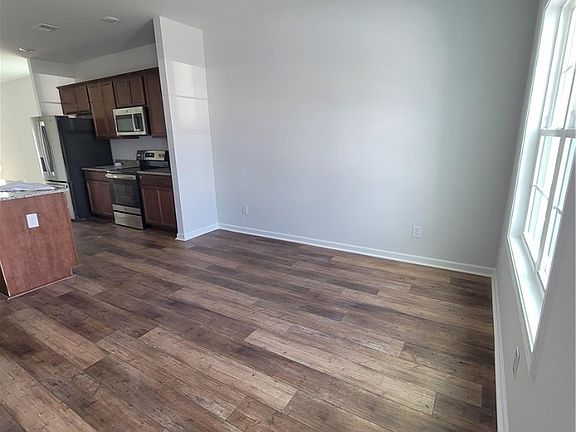 This single-story home includes 3 bedrooms and 2 bathrooms. Immediately inside the entryway is a flex space that you can turn into a dining room. The kitchen connects the free space to the family room. The primary bedroom and its walk-in closet are just off the family room. Two spare bedrooms share a second bathroom, and a laundry room is just inside the two-car garage.