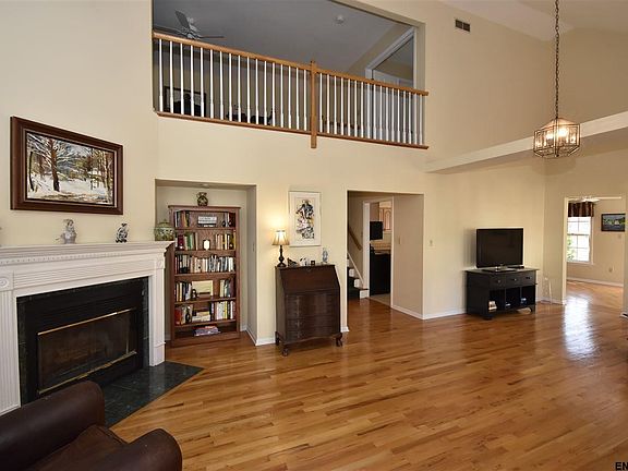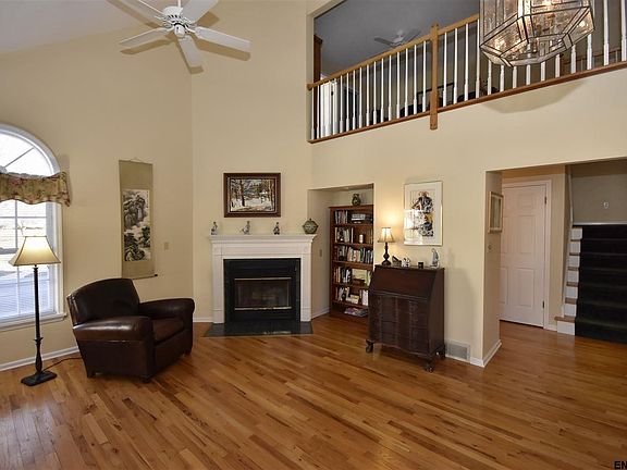 Spacious former model home with open floor plan and natural light pouring in throughout. Features include hardwood floors, large updated kitchen with breakfast bar, soaring cathedral ceilings, plus a large deck overlooking forever wild. Master suite on 2nd floor with spacious bath including separate shower and jetted garden tub. Finished basement area with multiple closets for storage plus a 2 car garage. Laundry room on 1st floor but currently located in basement area HOA only $110/month.