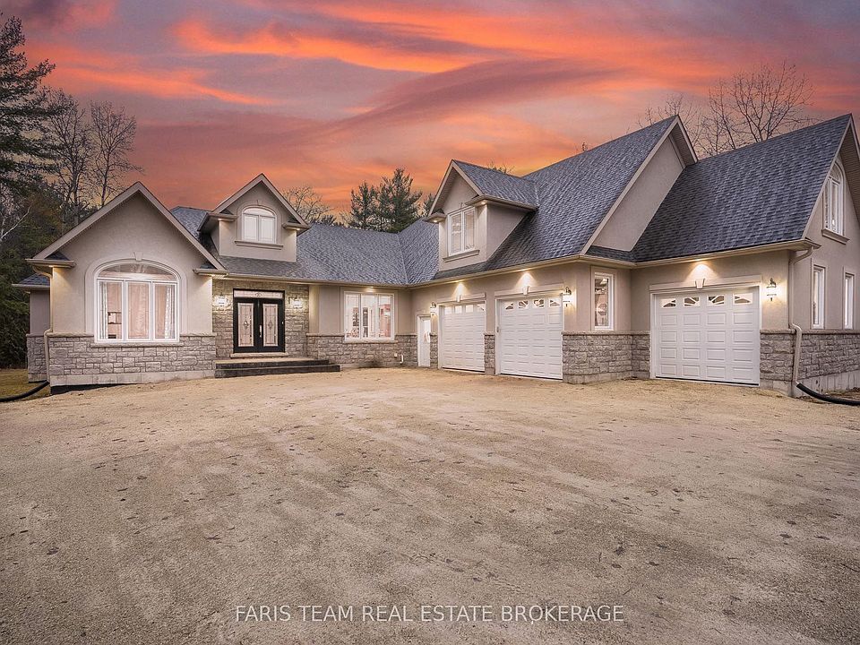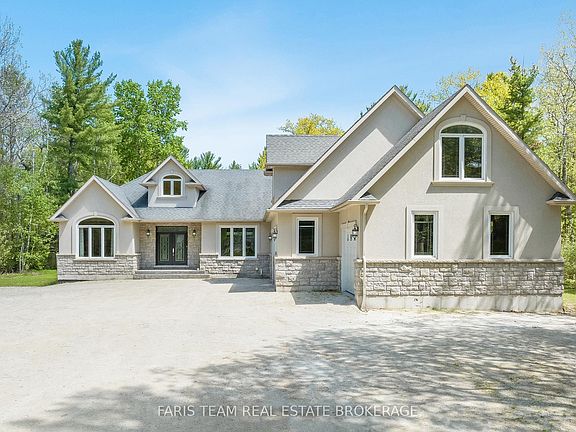 Top 5 Reasons You Will Love This Home: 1) A rare 5.6-acre setting surrounded by trees and nature, while being just steps to the Nottawasaga River and only minutes from shopping, schools, and the sandy shoreline 2) With over 8,500 square feet of finished living space, this home is designed for large families or multi-generational living, offering 4,669 square feet above grade plus a fully finished lower level 3) The stunning main level design welcomes you with soaring 18' tray ceilings, a stately oak fireplace, an impressive wall of glass doors leading to a two-tiered deck with a screened-in room, and a chefs kitchen shining with granite countertops, custom maple cabinetry, premium appliances, a wine cooler, and an oversized pantry, all flowing into a formal dining room ready for memorable gatherings 4) The luxurious bedrooms and suites include four spacious rooms on the main level, highlighted by a primary retreat featuring a three-sided fireplace, spa-like ensuite, and walk-in closet, with the lower level delivering its own garage entrance and functions almost as a separate residence with a fifth bedroom, bright family room with gas fireplace, custom wet bar, gym, and even a hockey locker room 5) No detail was overlooked in the premium features and endless possibilities this property features heated bathroom floors, dual furnaces, upgraded sound-proofing, 400-amp service, and solid 10 concrete foundation walls, coupled with a fully insulated 30'x45' triple garage with a finished loft, perfect for a studio, workshop, or guest suite, while the forested backyard stretches over 1,100 feet, creating an unmatched private sanctuary. *Please note some images have been virtually staged to show the potential of the home.