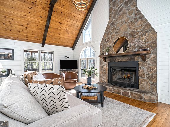 *MOTIVATED SELLER!* *PRICED BELOW MARKET VALUE!* This is a premier short-term rental investment or private mountain escape! Nestled on two rare, flat acres in the heart of North Georgia, this fully furnished three-bedroom, two-bathroom cabin is designed for both guest appeal and investor success. Ideally located just minutes from Lake Blue Ridge and downtown Blue Ridge, this property offers the perfect balance of seclusion and convenience. As you drive up, there is an easy-in, easy-out circular driveway. Stepping inside, you'll find floor-to-ceiling windows that flood the open-concept living space with natural light. A wood-burning fireplace serves as the focal point, creating a warm and inviting atmosphere for guests to gather. The modern lighting, tasteful furnishings, and well-appointed kitchen ensure a comfortable and seamless guest experience. Investors, the thoughtfully designed layout comfortably accommodates up to eight guests, with two bedrooms on the main level with full beds. Upstairs, the private loft suite with queen bed features its own bathroom, workspace, and additional seating area, providing a retreat-like experience. There is a large wraparound deck with a hot tub, and the fire pit with Adirondack chairs invites guests to relax under the stars. The expansive, flat acreage provides space for families to enjoy outdoor activities worry-free, a rare find in this mountainous region. There is even enough space to create your own pickleball court! Outdoor amenities are a major draw for visitors. This home is within walking distance of the community pond. Located on paved roads with easy access to hiking trails, wineries, shopping, and dining, this property is primed for a successful rental investment. Whether you're looking to capitalize on the thriving short-term rental market or seeking your own turnkey vacation retreat, this Bougie Cabin is ready to welcome you. (Pickleball Court Is Virtually Staged.)