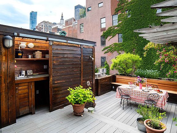 The top floor features the most charming studio room surrounded by a landscaped terrace to the east overlooking Lexington and beyond, and the large private roof deck to the west with views to the Empire State Building. On this floor there is a powder room, outdoor shower, and mini kitchenette perfect for entertaining.