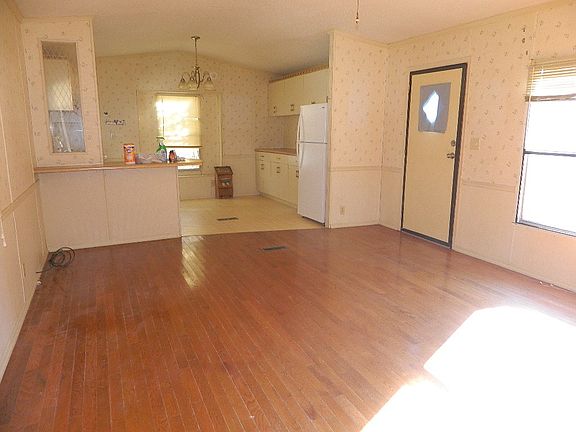 Pay rent no more!! You could own this 2 bedroom, 1 bath single wide and land!! Open kitchen and living room concept. Laundry area. Back porch, storage building and 2 car carport. Public water and sewer.