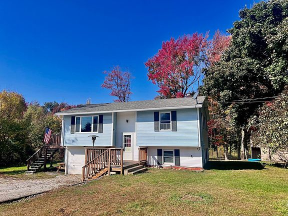 The home has had several upgrades in recent years to include an updated kitchen, and bath. The living area has LVP flooring. New flooring has been installed in the lower level in Sept of 2023 in addition to extenisve trim work being completed. The living area and master bedroom have had extensive wood accent work and the lower level offers ample storage. One bedroom has a raised bunk area and the 2nd bedroom on that level has had flooring upgrades. The water heater was recently replaced, and the front deck is just a couple yrs old. The sale includes all stainess appliances and washer dryer. The house has a 3 season porch with fresh paint that leads to an elevated 8x8 deck. The backyard is encased in trees and has a small shed that could be used for storage or as an animal barn. The home has village water and a septic system. This house has already had a property inspection completed ask for details and contact info for the previous inspector. A bank ordered appraisal has already been completed supporting the current list price. This house is located in a country setting just 3.5 miles from I-89.12 minutes to St. Albans and 40 Minutes to Burlington.