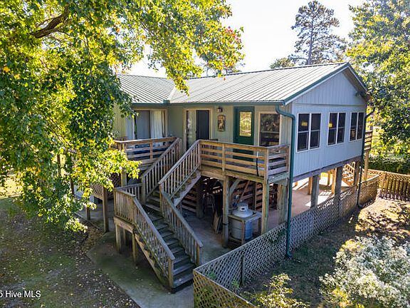 Beautifully-landscaped 1.0 acre fully-fenced waterfront home that has pristine privacy, 42' boat dock on protected, deep-water, private boat ramp and multiple storage & work shop buildings in Paradise Shores on Buxton Creek! This 1,440 hsf home is on pilings with concrete carport/storage areas under the house. Metal roof for long-life & low maintenance, 2017 HVAC system, 20 KW Generac whole-house generator and beautiful views of Buxton Creek! The centerpiece of the home is the vaulted T & G pine board ceilings in the kitchen & living room with a spacious sun porch overlooking Buxton Creek! Two bedrooms and one full bath ideal for a small family permanent residence or perfect as a 2nd home for someone that wants a getaway to one of the best fishing, crabbing, shrimping, oystering, duck & deer hunting meccas in eastern North Carolina! No HOA or HOA dues! Nothing Could Be Finer!