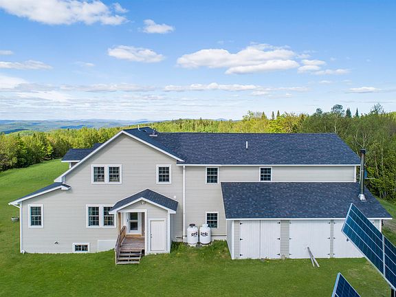 Are you looking for a newer home, on top of a mountain, located at the end of a dead-end road, on 49.99 acres, with views of NH, VT, ME, and Canada? Then look no further! This exquisite home was built in 2016 and has a design and layout anyone is sure to love. The main level offers open concept kitchen/dining/living room with a large kitchen island perfect for cooking and large gatherings; sunroom overlooking the surrounding mountains, full bath, walk-in pantry, and covered porch for relaxing after a long day. Upstairs is the oversized master with walk-in closet as well as a second large bedroom with its own walk-in closet. Upstairs also has the option of a separate 2 bedroom accessory dwelling with its own entrance. That space also has an open concept kitchen/dining/living room area with all plumbing, propane lines, and electrical in place to easily install kitchen cabinets and appliances. 3-car attached heated garage with radiant heat with direct entry, large open lawn area, shed with drive-through space for your toys, snowmobile and ATV trail access...the list goes on and on! Home is off-grid with the latest solar technology and newer lithium battery system, back-up diesel generator, multiple water sources, multiple heat sources, and central vac throughout the home and garage. Just move in and start living. Additional 12.8 acre pasture available for purchase only to the person who buys this home. An excellent opportunity to start your own homestead/hobby farm!