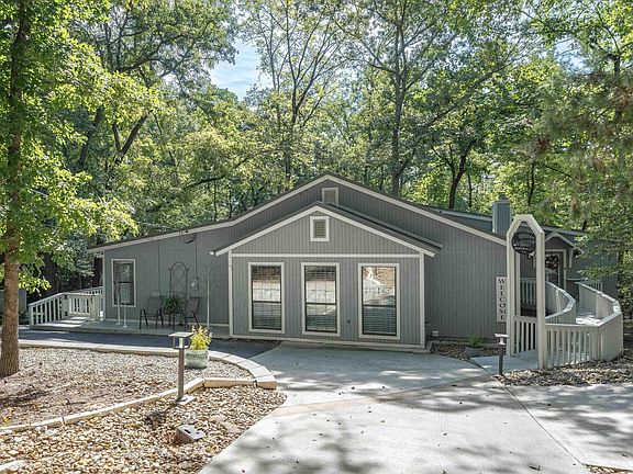 Discover the perfect blend of indoor & outdoor living in this beautifully updated 3BR-2BA home located in the highly sought after Holly Lake Ranch in NE Texas. The open-concept living room & kitchen feature a vaulted ceiling, a WBFP, & walls of glass that flood the space with natural light offering stunning views. The remodeled kitchen boasts quartz countertops, dining bar, SS appliances, pantry, under & over cabinet lighting, + a new custom-built island for extra storage & seating. Primary bedroom suite includes a recently upgraded bath with quartz counters, double sinks, & a Schluter walk-in shower system. The guest bath features a custom vanity with beautiful vessel sink. Flexible floor plan offers a third bedroom that can serve as a second living area, office, or studio. Outdoor amenities include excellent curb appeal, new circular drive & stone retaining wall, extensive lighting & landscaping. The unique entry leads to a screened porch, wrap-around decking, & a pergola with breathtaking views of the rolling topography, ensuring complete privacy with no neighbors in sight. Additional features include a storage building, extra storage under the house, & a fenced dog run, all situated on approximately 1.5 acres of park-like grounds. Refrigerator, W/D, & living room TV convey. Most furniture available for purchase.