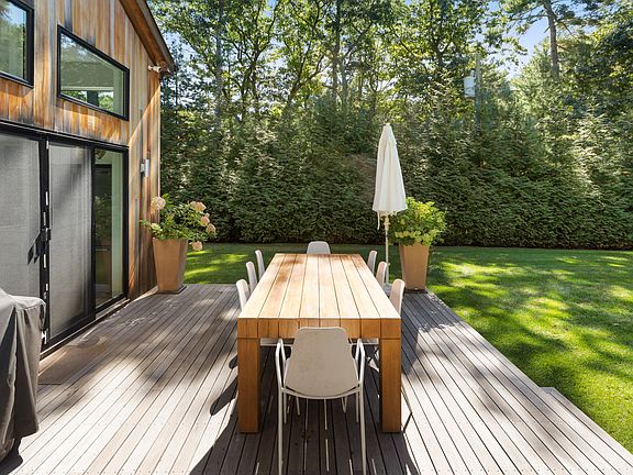 Enjoy a perfect East Hampton summer sojourn in this newly and completely renovated four bedroom four bath home on two acres. Chic interiors with white walls and beautiful wood floors are flooded with natural light from abundant windows, glass doors and multiple skylights. Open concept living areas flow among the living room with fireplace, dining area and eat-in kitchen with counter seating, stainless steel appliances and glass doors to a deck overlooking the heated pool in the private backyard. The sunny master suite has a sitting area and stylish bath with marble walls. Additional bedrooms and baths are all beautifully finished and appointed. Lounge or dine on the deck right here, or arrive at the beach or village restaurants and shops in a matter of minutes.The first two weeks of August through Labor Day have been rentedAvailable August 15 through Labor Day Price: $37,500